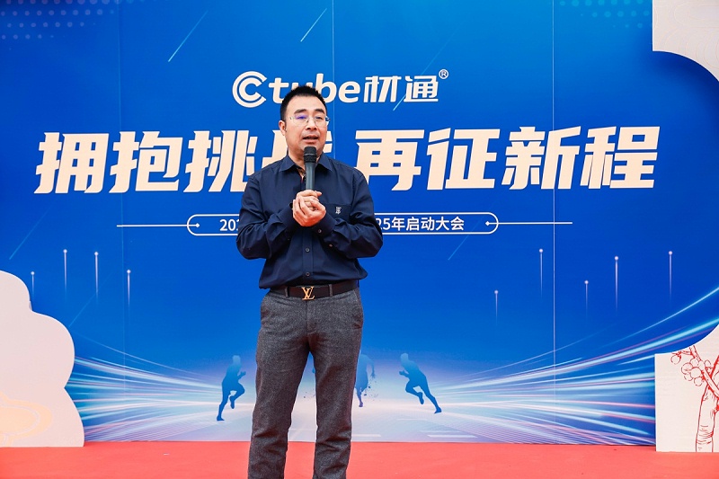 材通总裁余总在开场致辞中感慨道:“2024 年是充满艰辛与突破的一年,全体材通人在惊涛骇浪般的市场环境中奋勇拼搏,才铸就了今日的成绩。” 他强调,企业建设的稳步推进、技术创新的不断突破、市场版图的持续拓展,都离不开每一位员工的日夜坚守与辛勤付出。同时,余总指出,2025 年将是更具挑战性的一年,希望大家可以同心协力,再征新程。